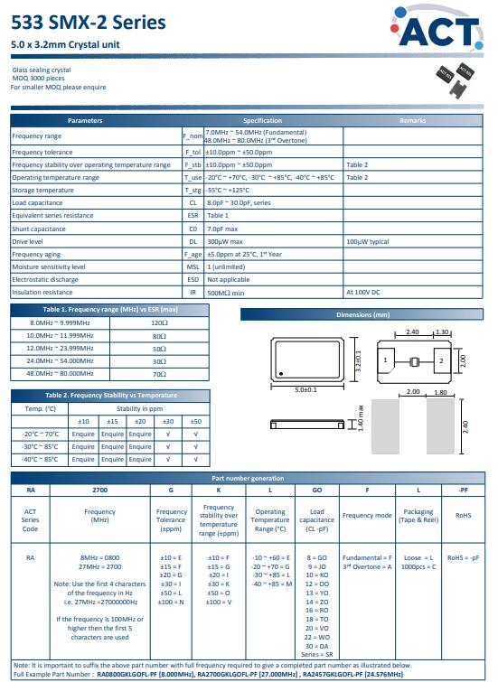 更多>>英國(guó)艾西迪晶振,533 SMX-2晶振,5032二腳晶振