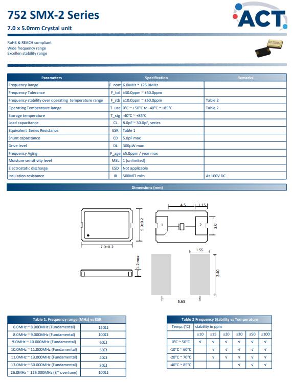 更多>>英國(guó)艾西迪晶振,752 SMX-2晶振,7050二腳晶振