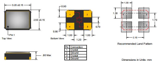 美國安德森晶振|AE-135-A-1-4085-2-20-18M4320|3225mm晶振尺寸圖