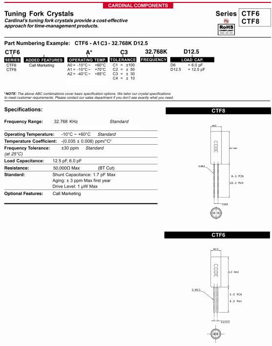 更多>>美國(guó)Cardinal晶振,CTF8圓柱音叉晶體,CTF8-A1-C4-32.768K-D12.5晶振