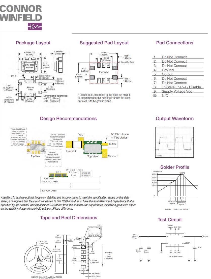 4. 謹(jǐn)慎選擇C1、C2的容值。盡量按照廠家提供的推薦值設(shè)計(jì)。在滿足起振要求的前提下,C1、C2的取值可以盡量小,能縮短貼片晶振起振時(shí)間。ConnorWinfield Crystal,D75J型號(hào)晶振,進(jìn)口晶振
