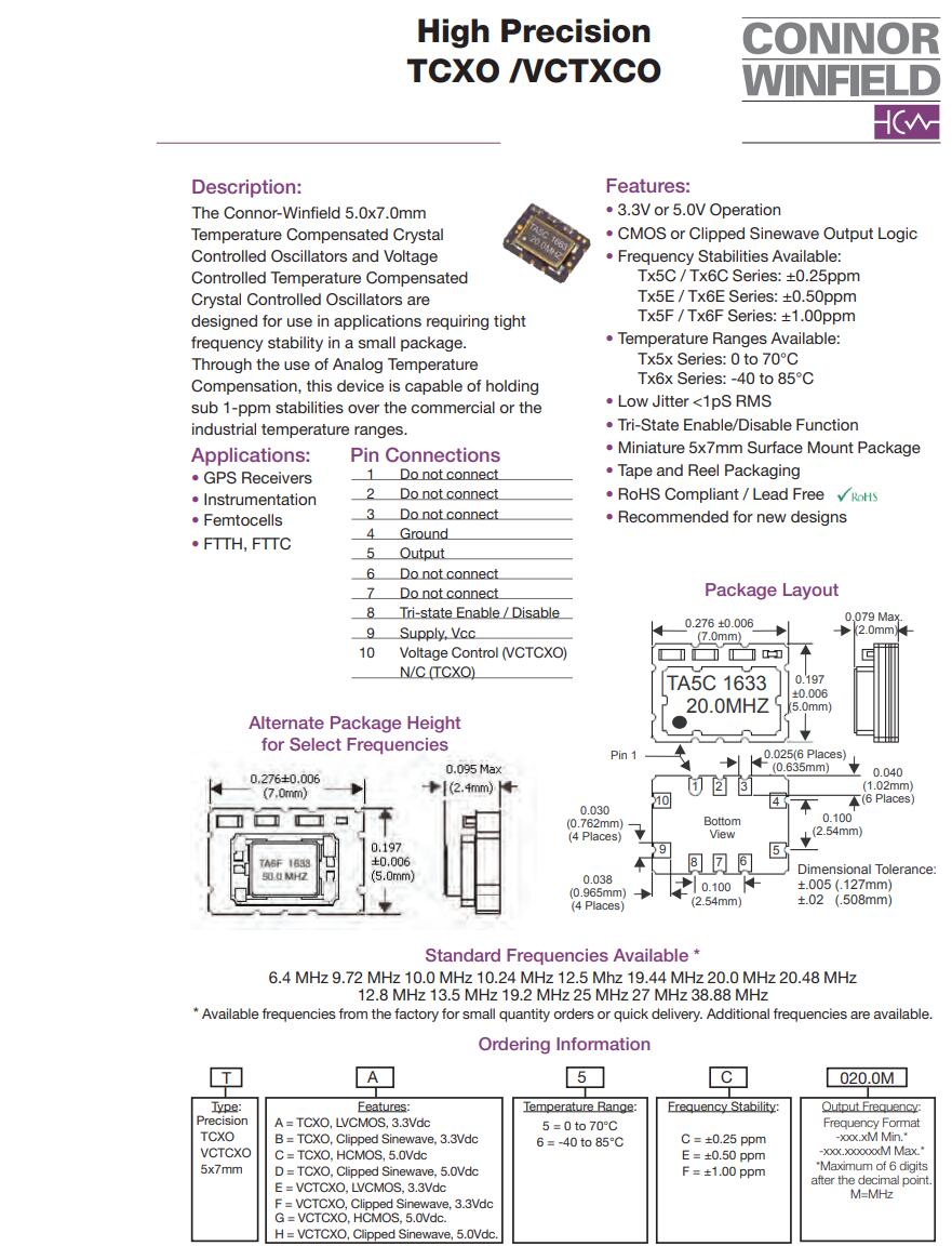 更多>>康納溫菲爾德晶振,TX180晶振,7050溫補晶振