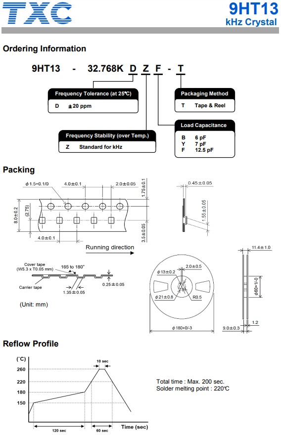 | 9HT11-32.768KDZC-T | TXC Crystal | 9HT11 | kHz Crystal (Tuning Fork) | 32.768kHz |