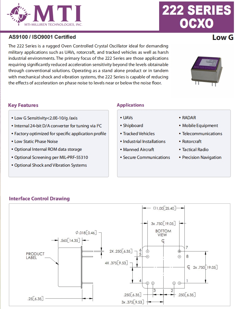 領先全球的MTI-Milliren新推出了適合苛刻軍事應用的222系列恒溫晶體振蕩器