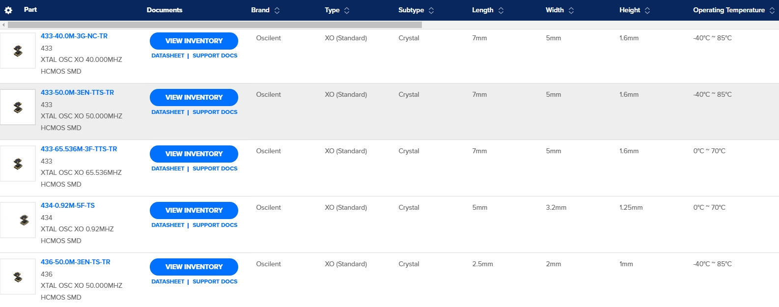 美國(guó)Oscilent晶振型號(hào)大全