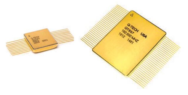 Multiple-output clocks used in a space application must meet the same specs as single-output space-qualified devices. Q-Tech produces multiple differential output LVDS full-space clocks at up to 200 MHz, and also CMOS full-space multiple output clocks at up to 125 MHz, in frequency. The QT625 LVDS series offers two up to 12 synchronous outputs from one flatpack package, and the CMOS version up to four outputs. By providing all outputs through the utilization of one ultra-precision, hermetically sealed quartz crystal resonator, no expense is spared in designing and making the resonator achieve superior performance.
