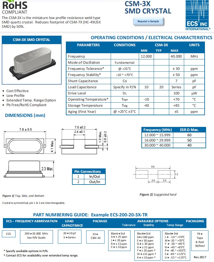 | ECS-120-20-3X-TR | ECS伊西斯 | CSM-3X | 12MHz | -10°C ~ 70°C |