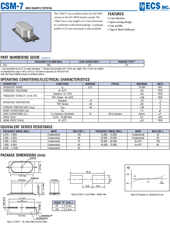 ECS-200-16-5P-TR,ECS品牌晶振,CSM-7貼片石英晶體,安防設(shè)備晶振,規(guī)格表