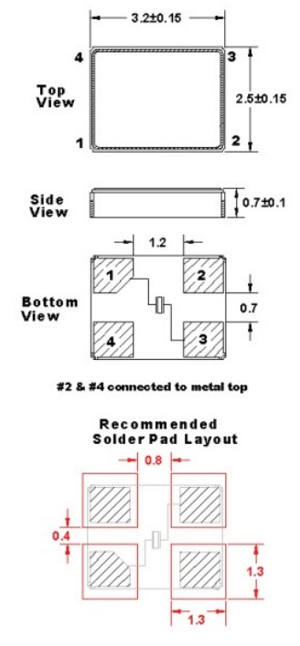 FOX晶振,FC3BACBDI40.0-T3,6G基站晶振尺寸圖