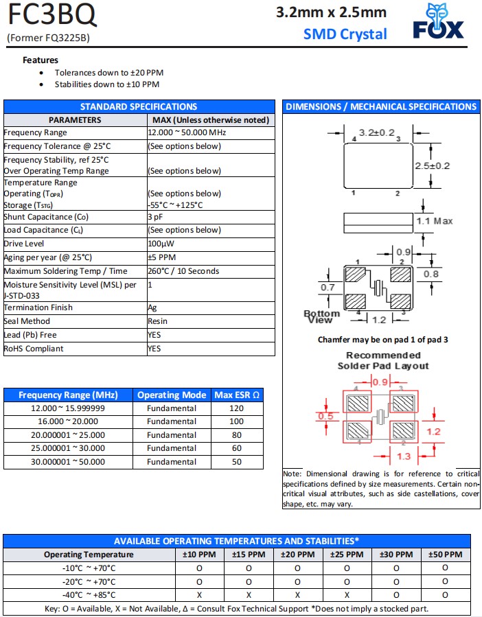 | FC3BQBBME25.0-T1 | Fox晶振 | FC3BQ | 25 MHz | ±50ppm |