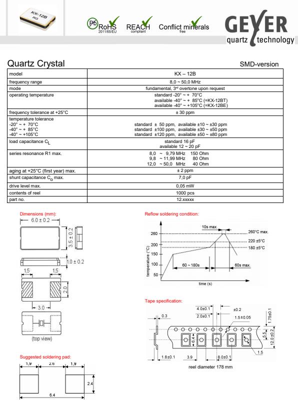 格耶德國晶振,KX-12B無源諧振器,6035mm兩腳晶振,貼片晶振本身體積小,超薄型石英晶體振蕩器,特別適用于有目前高速發(fā)展的高端電子數(shù)碼產(chǎn)品,因為貼片晶振本身小型化需求的市場領(lǐng)域,小型,薄型是對應(yīng)陶瓷振蕩器(偏差大)和普通的石英晶體振蕩器(偏差小)的中間領(lǐng)域的一種性價比較出色的產(chǎn)品.產(chǎn)品廣泛用于筆記本電腦,無線電話,衛(wèi)星導(dǎo)航SSD,USB,Blu-ray等用途,符合無鉛焊接的高溫回流焊曲線特性.