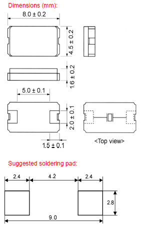 standard ± 30 ppm available ± 10 ~ ± 50 ppm |