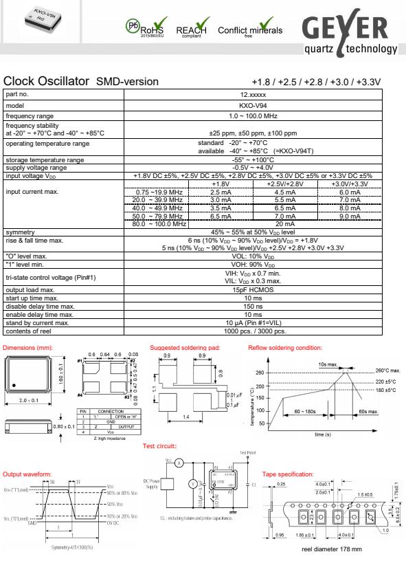 格耶德國晶振,KXO-V94低抖動晶振,SMD振蕩器