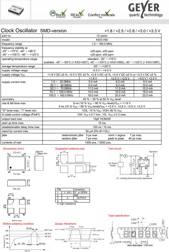 更多>>GEYER晶振,KXO-V95有源貼片晶振,低電壓晶振