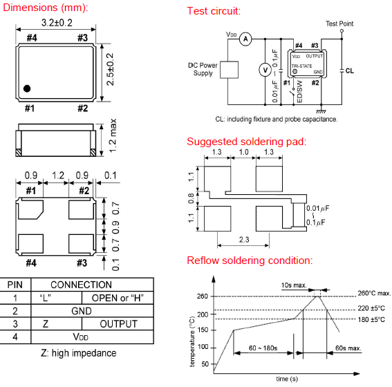 | stand by current max.* | 50 µA (Pin #1=VIL) |