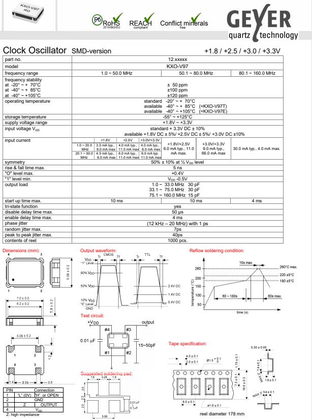 更多>>GEYER格耶晶振,KXO-V97帶電壓晶振,石英晶體振蕩器