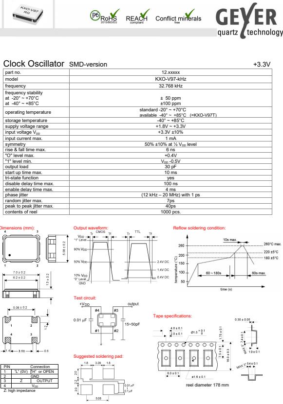 更多>>格耶德國(guó)晶振,KXO-V97-kHz石英振蕩器,32.768KHZ有源晶振