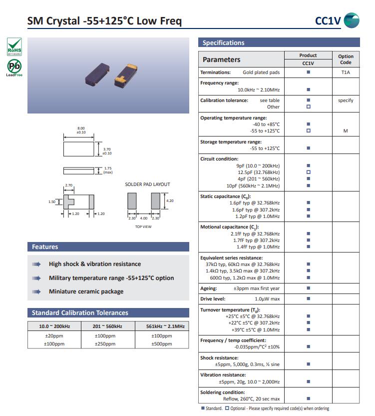 | 頻率溫度特征 | f_tem | ±30ppm over -40 to +85°C ±100ppm over -55 to +125°C | 超出標(biāo)準(zhǔn)的規(guī)格請(qǐng)聯(lián)系我們. | |