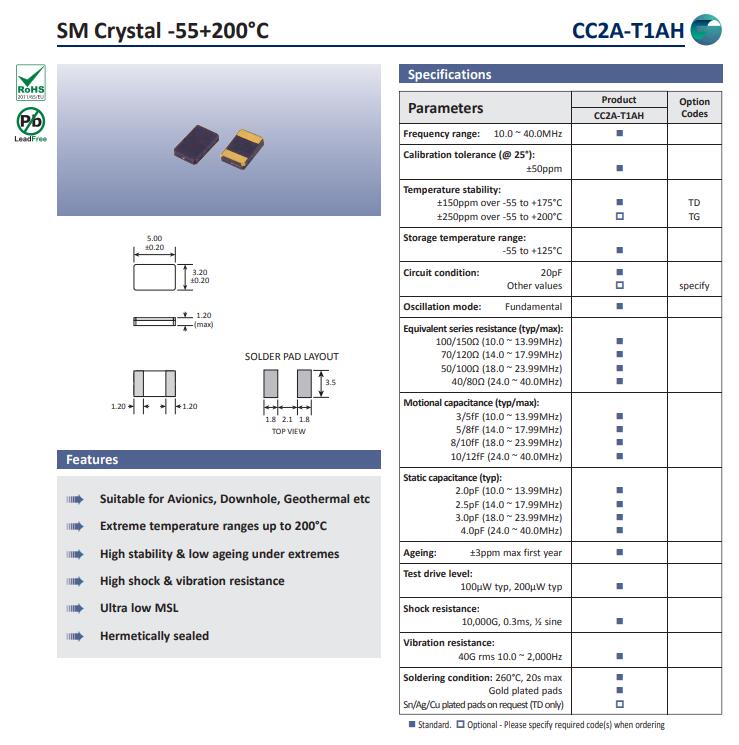 | 頻率溫度特征 | f_tem | ±150ppm over -55 to +175°C±250ppm over -55 to +200°C | 超出標(biāo)準(zhǔn)的規(guī)格請聯(lián)系我們. | |