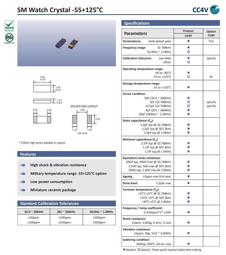 | 頻率溫度特征 | f_tem | ±50ppm over -40 to +85°C ±100ppm over -55 to +125°C | 超出標準的規(guī)格請聯(lián)系我們. | |