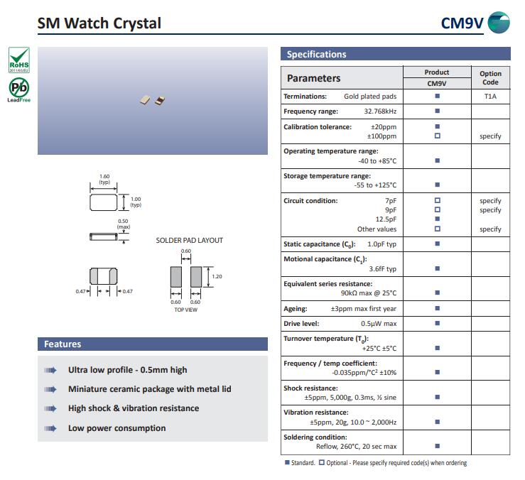 更多>>高利奇晶振,CM9V-T1A晶振,32.768K系列晶振