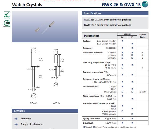 更多>>GolledgeCrystal,GWX-26晶振,206插件晶振