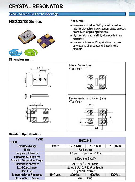 加高晶振,HSX321S晶振,3225小體積晶振3225mm體積非常小的SMDcrystal器件,是民用小型無線數(shù)碼產(chǎn)品的最佳選擇,小體積的晶振被廣泛應(yīng)用到,手機藍(lán)牙,GPS定位系統(tǒng),無線通訊集,高精度和高頻率的穩(wěn)定性能,非常好的減少電磁干擾的影響,是民用無線數(shù)碼產(chǎn)品最好的選擇,符合RoHS/無鉛.