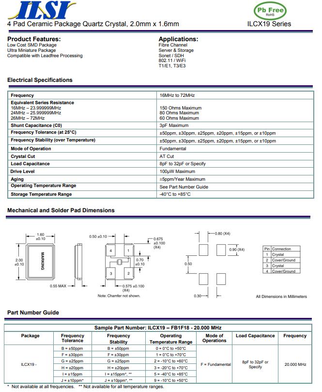 | ILCX07-FB3F13-16.000MHz | ILSI | ILCX07 | -20°C ~ 70°C | 16 MHz | ±30ppm | 13 pF |