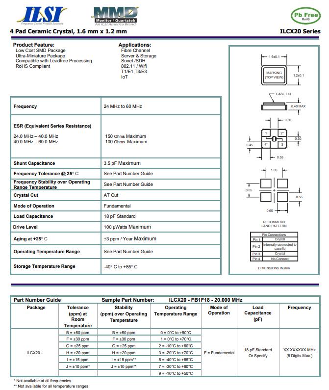 | ILCX07-HB3F18- 20.000 MHz | ILSI | ILCX07 | -20°C ~ 70°C | 20 MHz | ±20ppm | 18 pF |