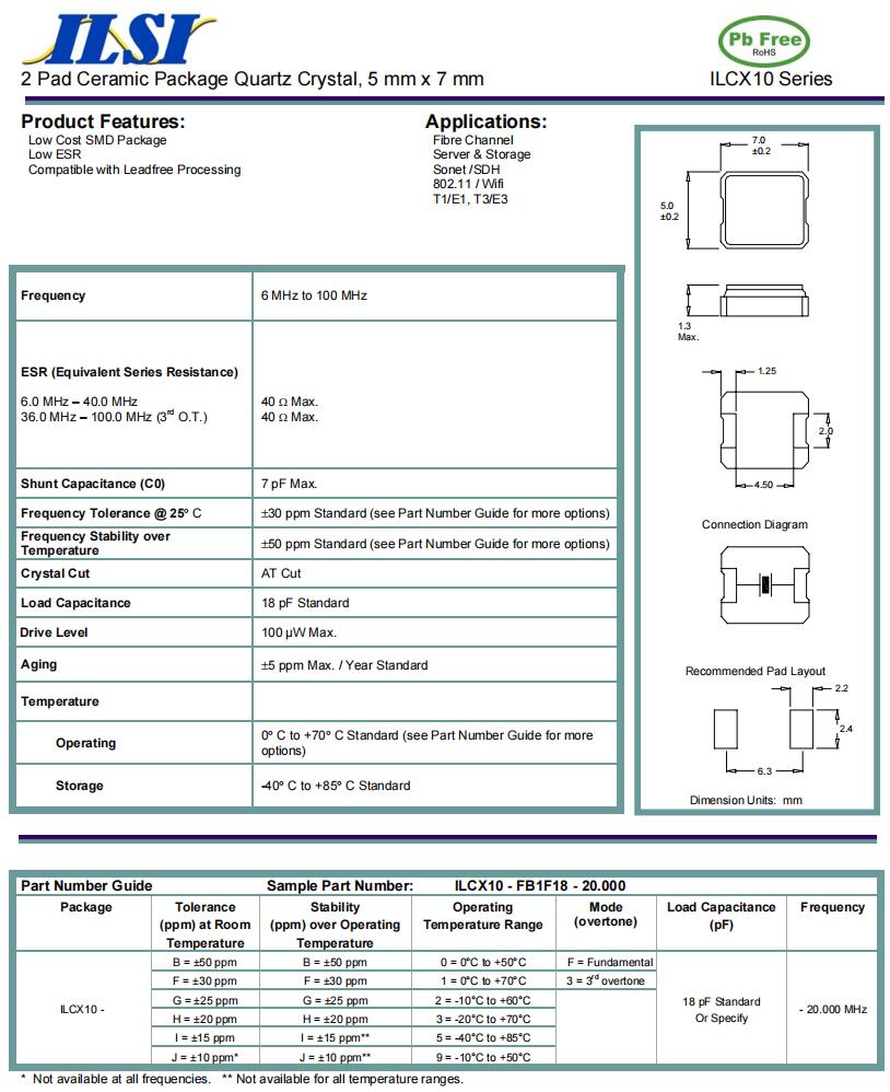 | ILCX07-FB3F13-16.000MHz | ILSI | ILCX07 | -20°C ~ 70°C | 16 MHz | ±30ppm | 13 pF |