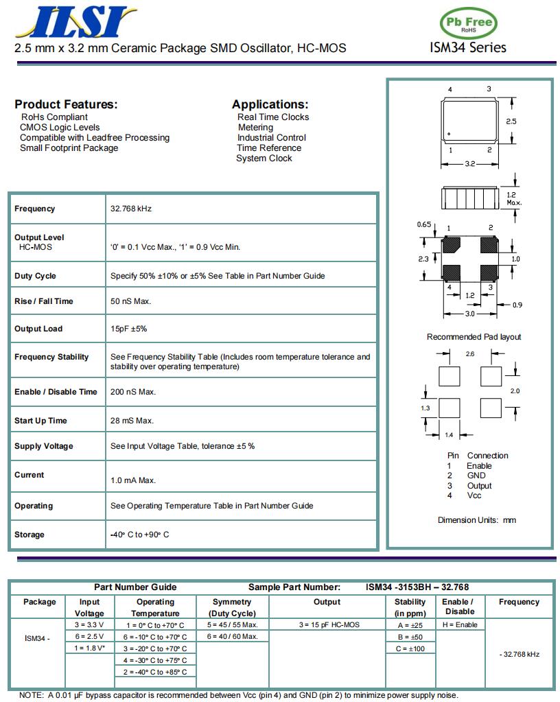 | IL3X2-HX5F12.5- 32.768 KHz | ILSI | IL3X2 | -40°C ~ 85°C | 32.768 kHz | ±20ppm | 12.5 pF |