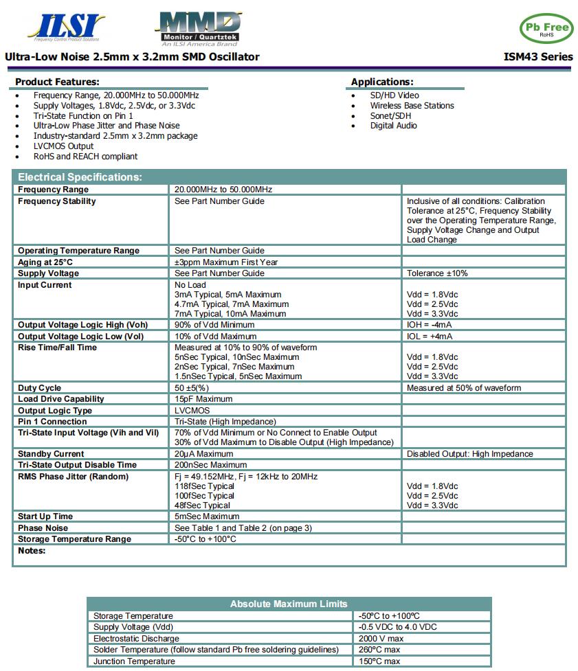 | ILCX07-FF3F16- 9.984 MHz | ILSI | ILCX07 | -20°C ~ 70°C | 9.984 MHz | ±30ppm | 16 pF |