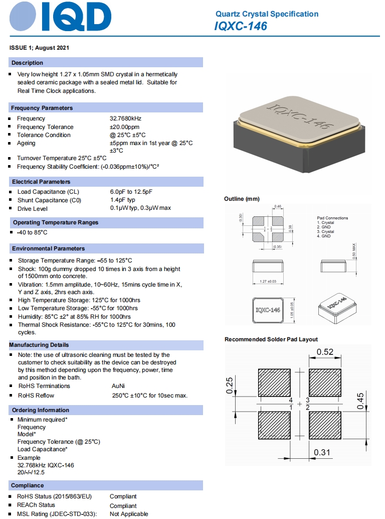英國IQD晶振,IQXC-146石英晶體,6G無線網(wǎng)絡晶振規(guī)格表