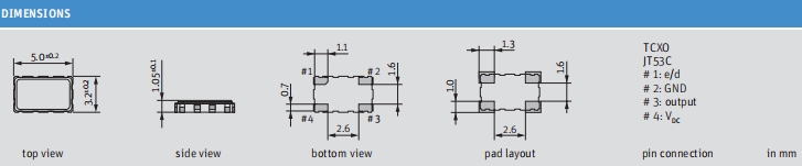 Jauch溫補(bǔ)晶振,O 26.0-JT53C-A-G-3.3-LF,6G移動(dòng)無(wú)線電晶振尺寸圖