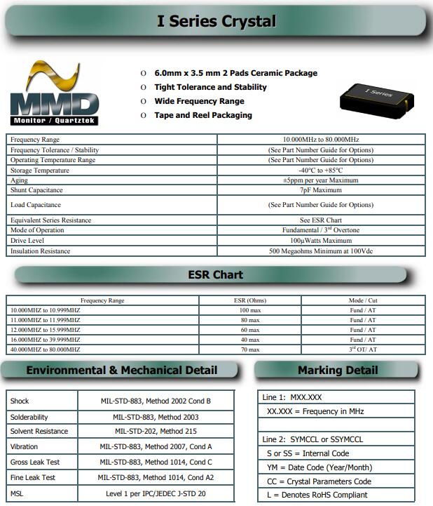 更多>>MMDCOMP石英晶振,I Series Crystal,6035二腳晶振