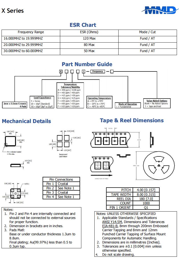 MMDCOMP晶振,X20AB1-18.000MHZ-T,6G路由器晶振規(guī)格表