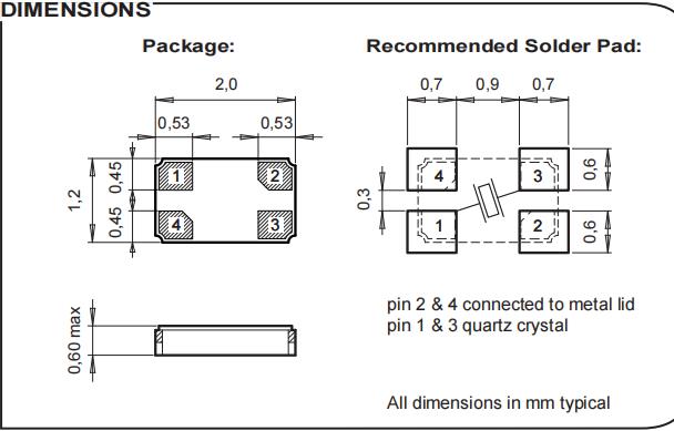 CM8A-T1D-27.000MHz-16.0pF-50ppm-TB-QI|2012四腳貼片晶振|6G光纖通道晶振尺寸圖