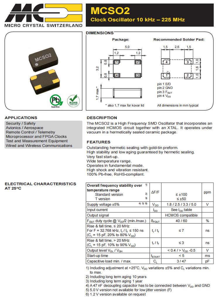 MCSO2FKHVT-C-40.000MHz-E/D-T3|低抖動(dòng)晶振|6G模塊晶振,瑞士微晶晶振,MCSO2有源晶振,MCSO2FKHVT-C-40.000MHz-E/D-T3晶振,5032mm晶振,進(jìn)口SMD晶振,頻率40MHz,電壓3.3V,頻率穩(wěn)定性50ppm,工作溫度-55~125°C,高穩(wěn)定性晶振,耐高溫晶振,6G模塊晶振,微處理器晶振,測(cè)試和測(cè)量設(shè)備晶振,有線和無(wú)線通信晶振,航空電子晶振.
