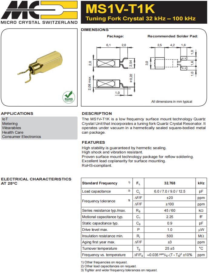 | MS1V-T1K-32.768kHz-6pF-10PPM-TA-QC-Au | Micro 晶振 | 晶體 32.768 kHz 6.0 pF +/-10 PPM -40/+85C | Crystals |