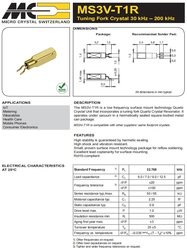 | 202684-MC03 | Micro Crystal | 晶體 32.768 kHz 4.0 pF +/-20 PPM -40/+85C |