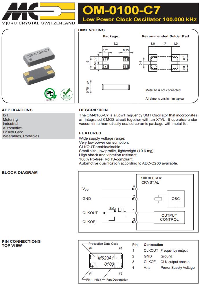 | CM7V-T1A-100.000kHz-9pF-100PPM-TA-QC | Micro 晶振 | 晶體 100.000 kHz 9.0 pF +/-100 PPM -40/+85C | Crystals |
