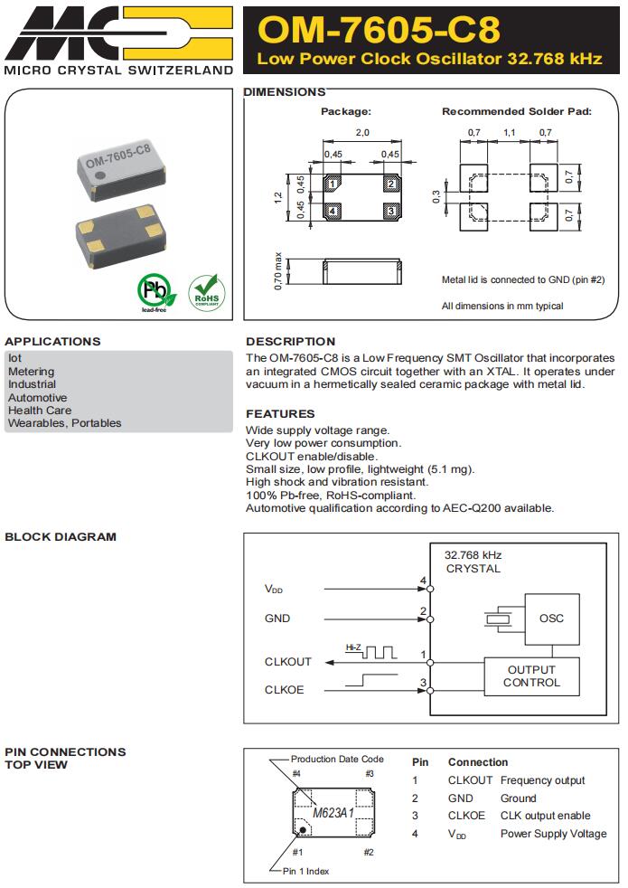 | OM-7605-C8-20PPM-TA-QA | Micro Crystal | 標(biāo)準(zhǔn)時(shí)鐘振蕩器 32.768kHz 20ppm 1.6-5.5V |