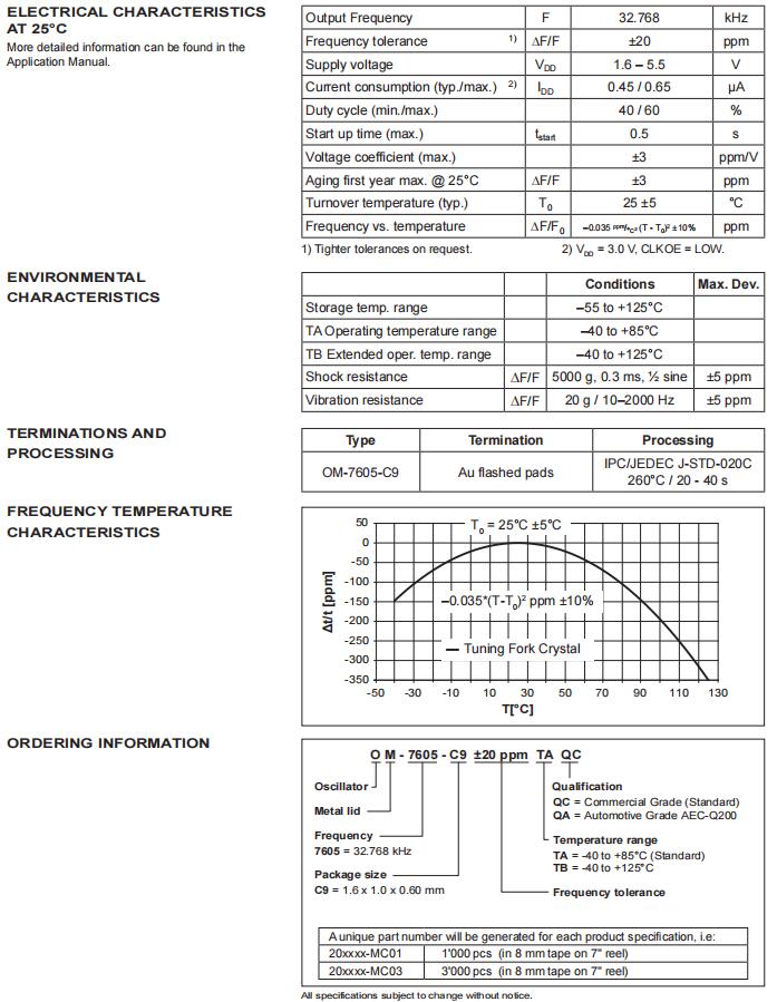 | CC7V-T1A-32.768kHz-9pF-20PPM-TC-QC | Micro 晶振 | 晶體 32.768 kHz 9.0 pF +/-20 PPM -55/+125C | Crystals |