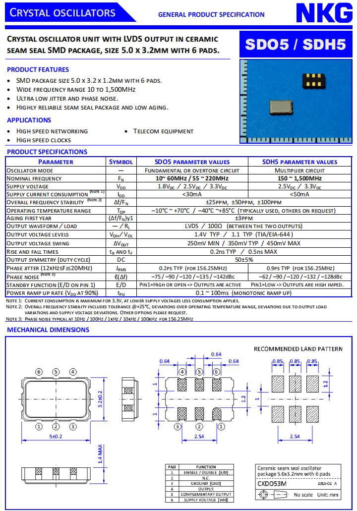 NKG進(jìn)口晶振|SDO5-6-A-150.00-WTS-EXT|5032差分晶振規(guī)格表