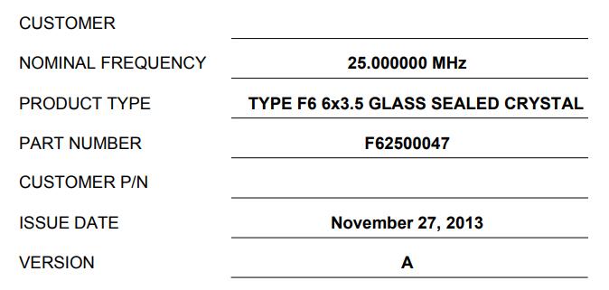 | 型號(hào) | F62500047晶振 |