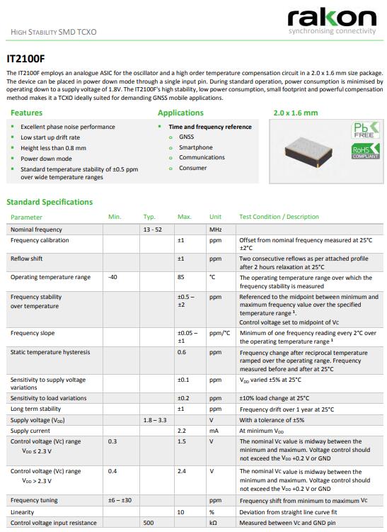 更多>>美國瑞康晶振,IT2100F晶振,2016溫補晶振