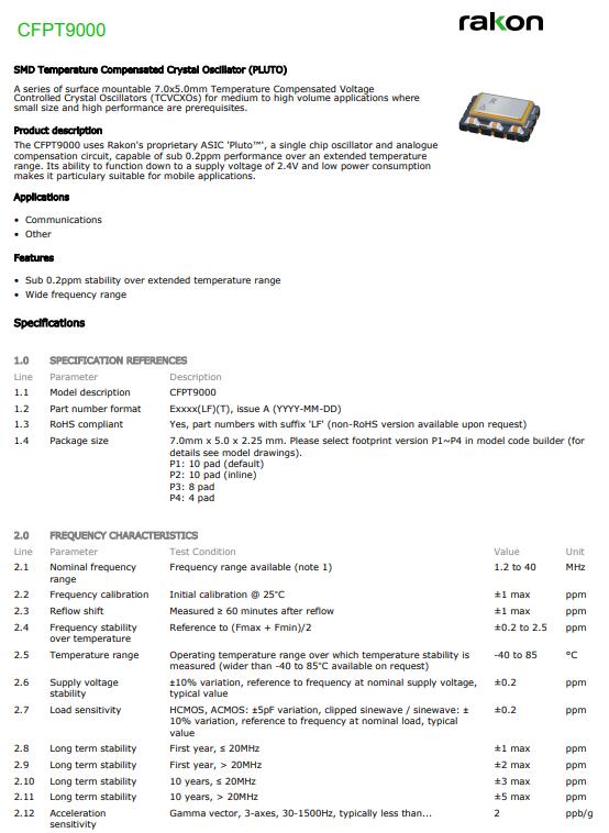 更多>>RAKON晶振,CFPT9000晶振,7050溫補(bǔ)晶振