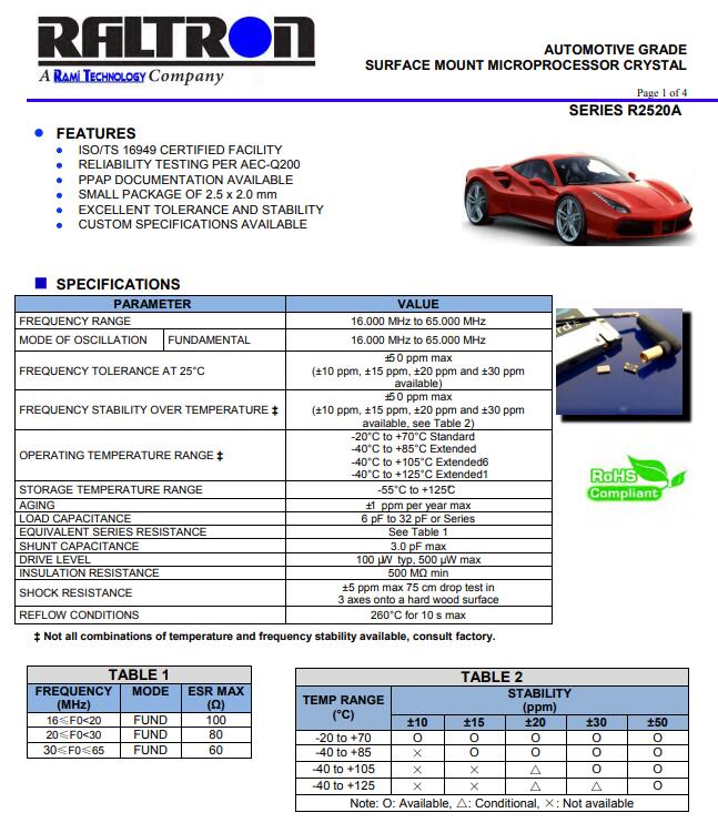 Raltron晶振還通過提供追求快速增長的物聯(lián)網和機器到機器市場完整的無源器件封裝,包括晶體, TCXO, SAW濾波器, LTCC濾波器和巴倫以及相應IC解決方案規(guī)定的各種.天線、Raltron 晶振公司致力于為符合歐盟議會和2011年6月08日理事會2011/65 / EU指令的頻率管理設備提供限制在電氣和電子設備中使用某些有害物質(RoHS指令).