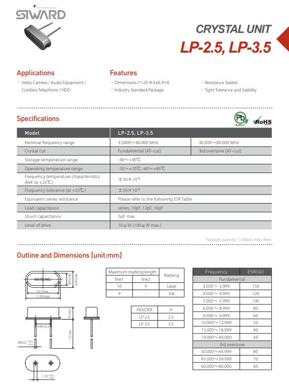 更多>>希華晶振,LP-2.5晶振,49插件晶振
