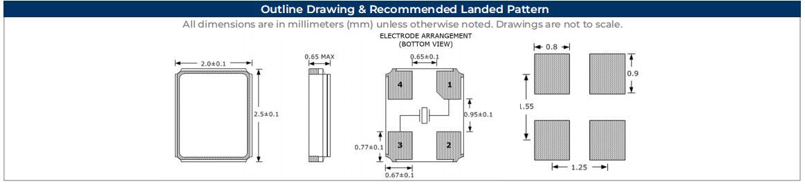 | SXT22410AA16-25.000M | 2.5X2.0 SMD (4 PAD) CRYSTAL | 10pF | ±50ppm | 25.000M |